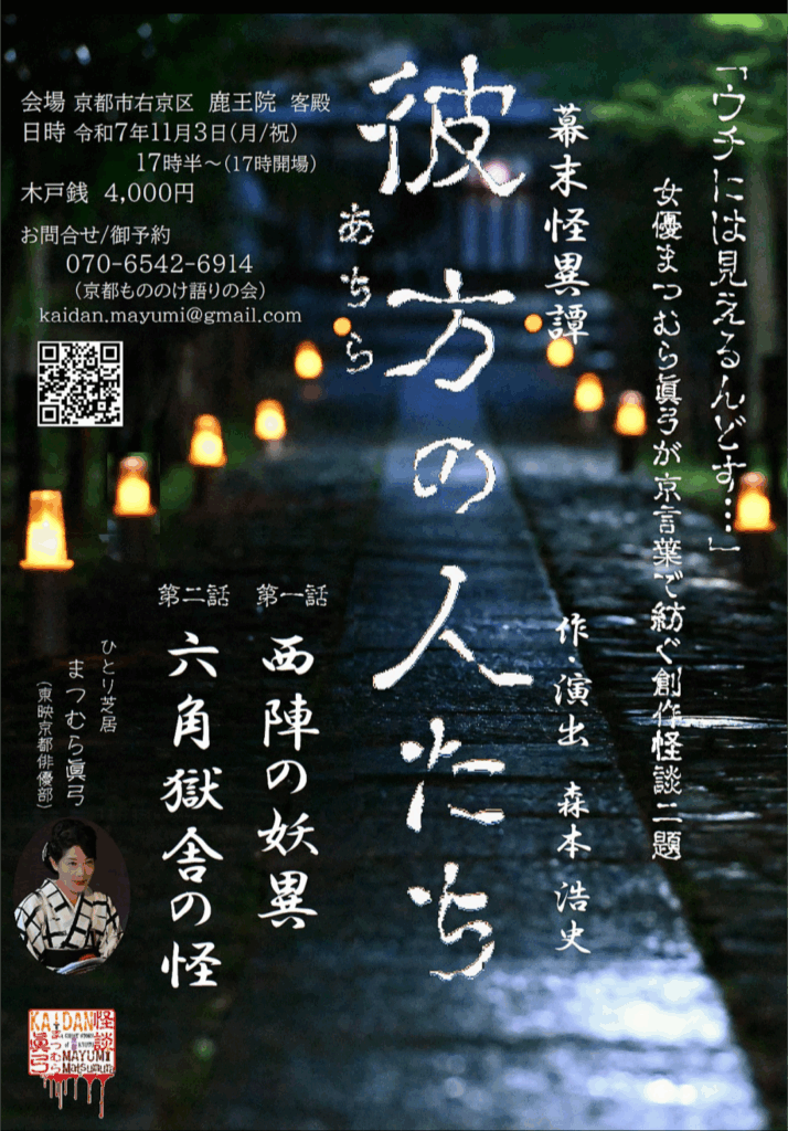 まつむらさん1人で数人を演じるひとり芝居で、今年は京幕末怪異譚『彼方(あちら)の人たち』