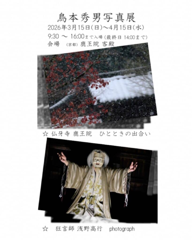 静寂に包まれた鹿王院で、ひとりの狂言師が刻んだかけがえのない時間。鳥本秀男氏が捉えたのは、浅野高行氏と古刹が織りなす、無常の「ひととき」です。